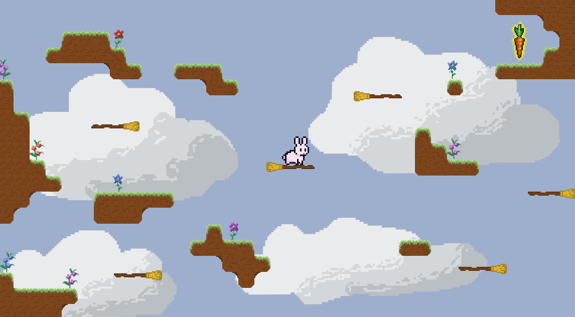 Event 1 > Tiny brooms appear as moving platforms in the cloud level